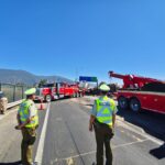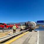 El hecho involucró a un camión que transportaba asfalto líquido y que, por causas que se investigan, perdió el control, volcándose sobre la calzada y quedando en suspensión sobre el paso superior, entre ambas pistas de la Ruta 5 Sur.